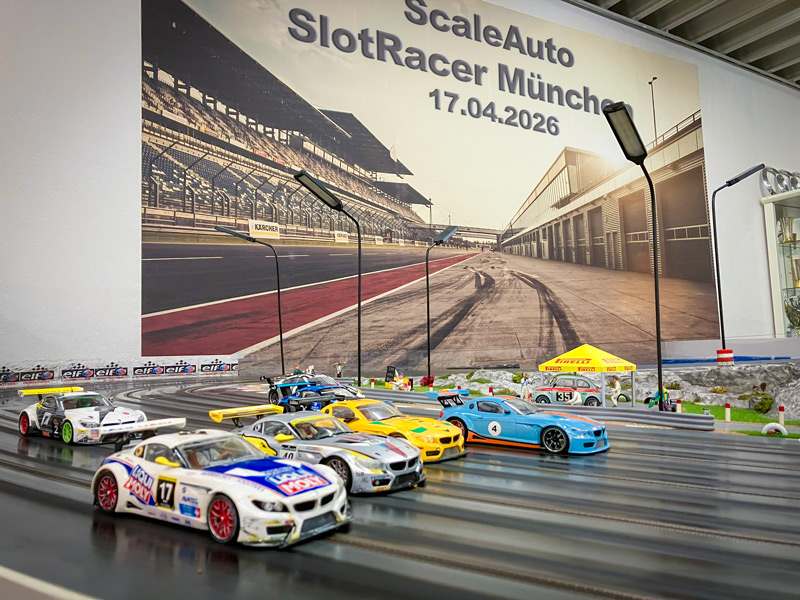 Bei unserem ScaleAuto-Doppelpack war bis auf eine tapfere Viper und einen ebenso mutigen Porsche das Starterfeld fest in weiß-blauer Hand. Und wer sahnt am Ende ab? Die Viper. Zweimal am Start, zweimal ganz oben auf dem Treppchen. Und wer war am Regler? Das klären wir jetzt. Das erste Rennen begann fast schon gesittet. Kaum Abflüge, wenig Chaos. Lediglich Thomas Burgharts Z4 hatte so seine liebe Mühe mit dem Grip und verabschiedete sich vorzeitig aus dem Rennen. Im zweiten Durchgang war es dann vorbei mit der Zurückhaltung. Jetzt wurde gefahren, als gäbe es kein Morgen! Ein besonders spektakulärer Moment: Ein Z4 stellte sich nach einem kleinen Fahrfehler quer – und wurde vom nachfolgenden Z4 kurzerhand über die Bande befördert. Flugshow inklusive. Hoppala! Auf den Spuren Rot und Weiß lieferten sich Sebastian Ohnesorge (Porsche) und Dieter Mühlmann (Z4) ein ordentliches Duell nach dem Motto: „Wer bremst, verliert!“ An der Spitze jedoch ließ einer nichts anbrennen: Holger Schmidt dominierte beide Rennen auf Viper und fuhr jeweils souverän zum Sieg. Dahinter landete zweimal Alfred Kolb, der als einziger zwischen den beiden Rennen das Fahrzeug wechselte. Beide Male Z4, es wurde jedoch nur um ein paar Teilstriche besser. Für die Podestplätze dahinter sorgten im ersten Rennen Peter Bordovsky und im zweiten Rennen ein wiedererstarkter Thomas, der die Pause offenbar sinnvoll genutzt und seinem Z4 endlich den nötigen Grip entlockt hatte. Fazit: Viel Action, fliegende Autos und am Ende eine Viper ganz vorne. Das nächste ScaleAuto-Rennen steigt am 19. Juni – wir freuen uns schon auf die nächste Runde Vollgas!